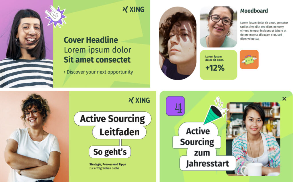 The XING brand gets a strategic repositioning. With this comes a radical rejuvenation of the design. For this we need an image language that can keep up with the colourful, contrast-rich palette and the cheeky design elements.